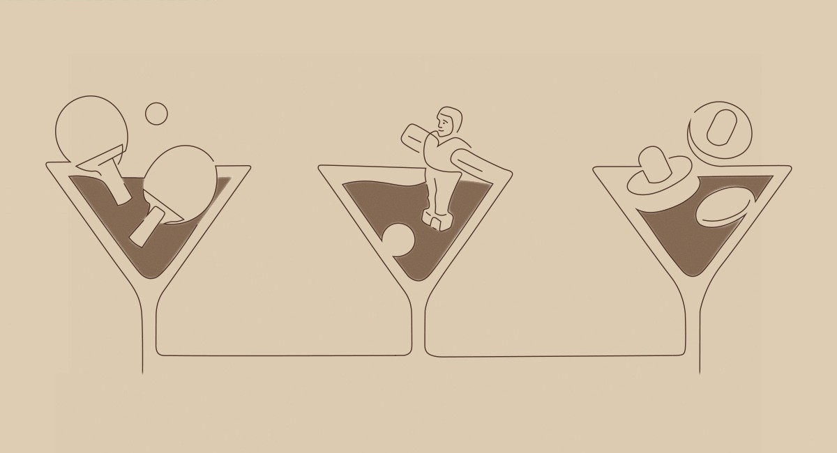 Final illustration combining wine glasses with table sport elements to visually represent the event's dual focus. The minimalist line art style and warm tones create a sophisticated yet playful aesthetic appropriate for email invitations.